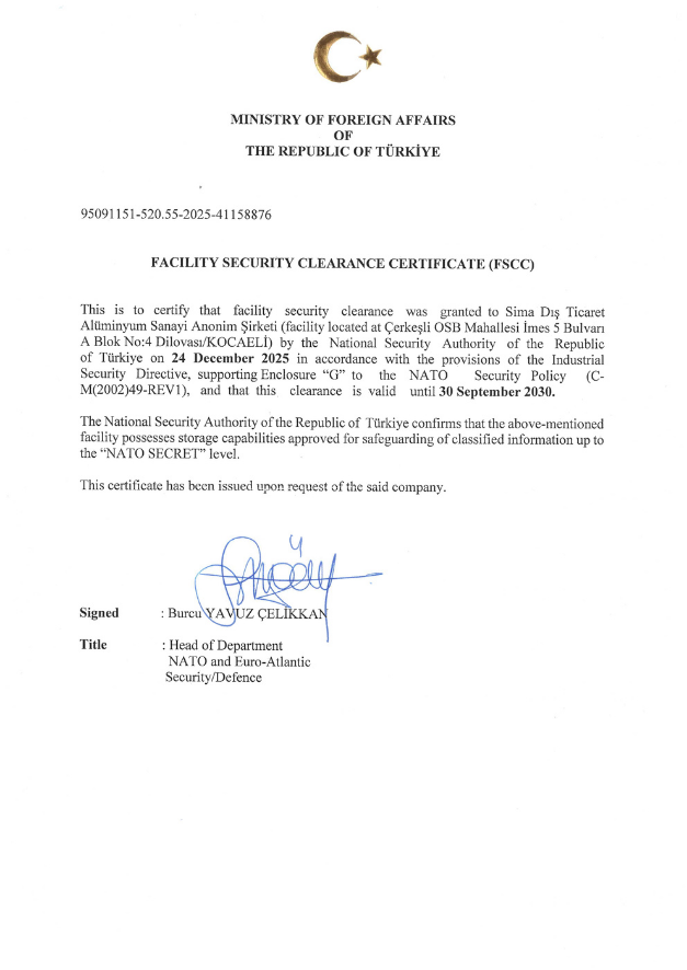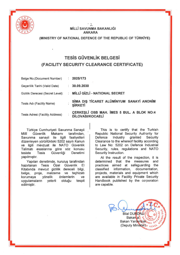 ISO 9001 Kalite Yönetim Sistemi Belgesini almaya hak kazanmıştır.